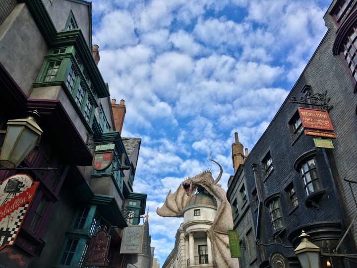 The Wizarding World is split into two parts: Diagon Alley in Universal Studios and Hogwarts and Hogsmeade in Universal’s Island of Adventure both of which are connected by catching the Hogwarts Express from King’s Cross Platform 9 3/4 in Universal Studios to the Hogsmeade Station in Island of Adventure or vice versa depending on where you are. In order to be able to ride the Hogwart’s Express and visit both parks, you will need to buy a park to park ticket. It costed us $155 (without tax) per person to visit both parks for one day only. Depending on your budget, you can also add on Express passes at an additional charge that will help you skip certain lines but not inclusive of all rides. We did not purchase Express passes and did not regret it either.